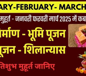 जनवरी 2025 गृह निर्माण मुहूर्तShubh Muhurat CalendarJanuary 10, 2025Griha Nirman January 2025 Shubh Muhurat – जनवरी माह में कौन कौन से तिथियां है गृह निर्माण, भूमि पूजन, नीव ... Read More